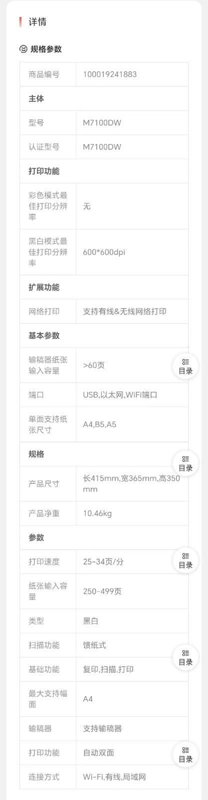 奔圖(PANTUM)M7100DW黑白激光多功能一體機(jī)